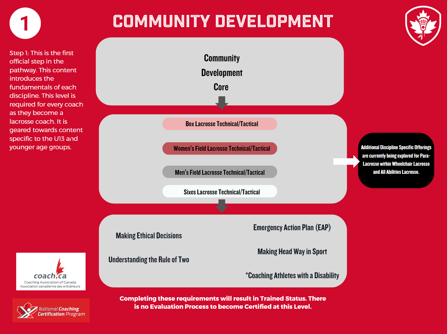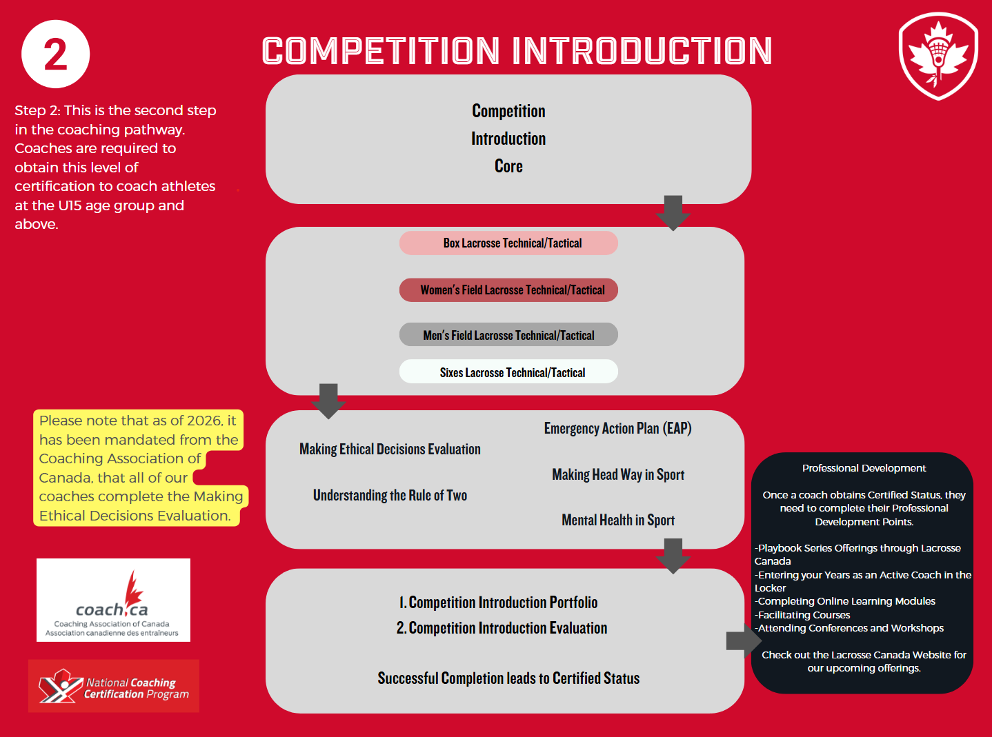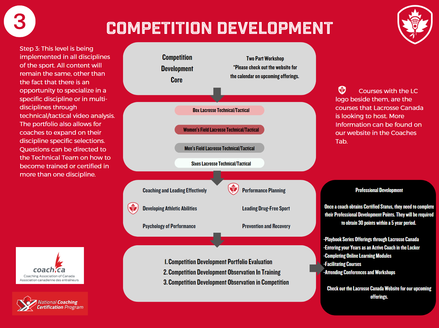 The Canadian Lacrosse Association and Coaching Association of Canada have worked together to develop a Coaching Certification Pathway that is specific to the sport of Lacrosse.