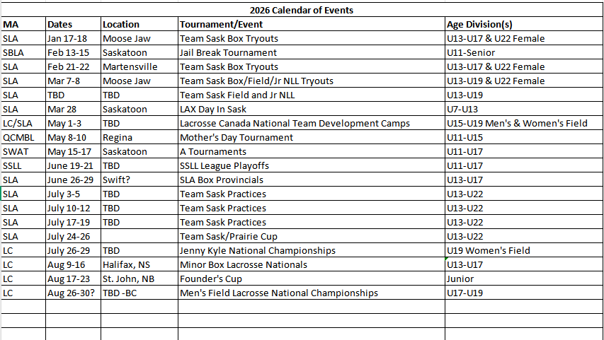 For anyone interested in joining the SLA Board as a Sector Chair for the 2026 year, they must be in good standing with the SLA and be nominated for the role. There are five Sector Chair positions available, Field, Box, Women's, Coaching, and Officiating. This form is due by midnight on November 22, no late submissions will be accepted. The nomination form is located at this link: